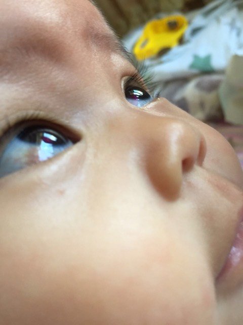 宝宝不到五个月,今早发现左眼黑眼珠下方眼白有一块红,昨天宝宝常揉眼睛,今早同一只眼睛有些眼屎,请问