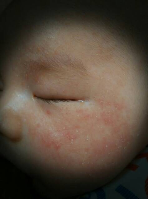 我们房间开的油丁,刚开始没开加湿器,宝宝脸上起的干皮,还有红疙瘩,看图,这两天把加湿器打开了,宝宝