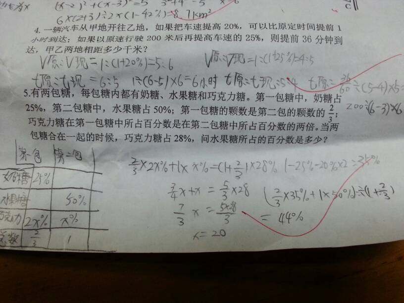 设初始速度为细耗V 1,时间为T1,第一次提速为V 2,时间为T2,则有V1*T1=V2*T2 又V2=1.2V1 T2=T1-1 可求得T1=6小时 则两地之间的距离用6V1表示。 设第二次提速为V3 则V3=1.25V1 36分钟=0.6小时 则有 200/V1+(6V1-200)/1.25V1=6-0.6 化简并解菠夕关于V1的一元一次方程得V1=200/3 所以两地之间的距离为6V1=6*200/3=400 即两地之间的距离为命指化400千米。 你的答案是对的,这是用列方程得思路,相对麻烦一些。