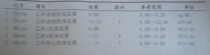 想问下;去年十一月份得了急性黄疸肝炎,后续已经治愈,但乙肝两对半的四五项还是呈阳性?真是为什么呢? 是不是得过急性肝炎后四五项永远都呈不了阴性了?谢谢各位! 点击展开 匿名用户 2014-05-14 19:39 为您推荐: 其他回答 病情分析: 根据你的描述和你的检查结果你应该已经注射了乙肝疫苗。 指导意见: 关于4,5项阳性你不要管它。有其它阳性时就有意义。 匿名用户 2014-05-14 20:22 相关问题 新生宝宝第四天乙肝两对半2 4 6阳性怎么办啊?是小三阳吗以后会发展成慢性肝炎吗?我快疯了 乙肝两对半检查,四五项阳+是什么状况?有没有肝炎?能不能要孩子? 乙肝两对半第2、5阳性与以前得过黄疸肝炎有关吗