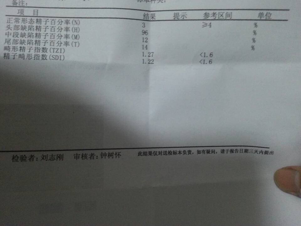 我这个情况严重吗?如果生小孩会不会有问题 点击展开 匿名用户 2014-01-13 22:28 为您推荐: 其他回答 病情分析: 您好,从您的化验结果看,正常形态精子3%太低,而畸形精子比例太高,会影响怀孕。 指导意见: 建议注意生活规律,多吃新鲜蔬菜,禁烟酒、锻炼身体提高机体抵抗力。避免桑拿浴、高温浴。减少精子的破坏。 匿名用户 2014-01-14 09:27 相关问题 请问精神有问题生小孩可以吗? 心脏有问题可以生小孩吗