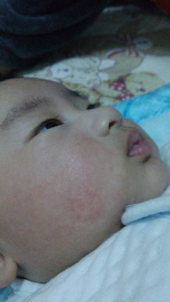 两个月男宝,配方奶喂养,脸蛋上有一圆圈处有红点,摸起来感觉像大人皮肤干燥,请问医生,这是什么