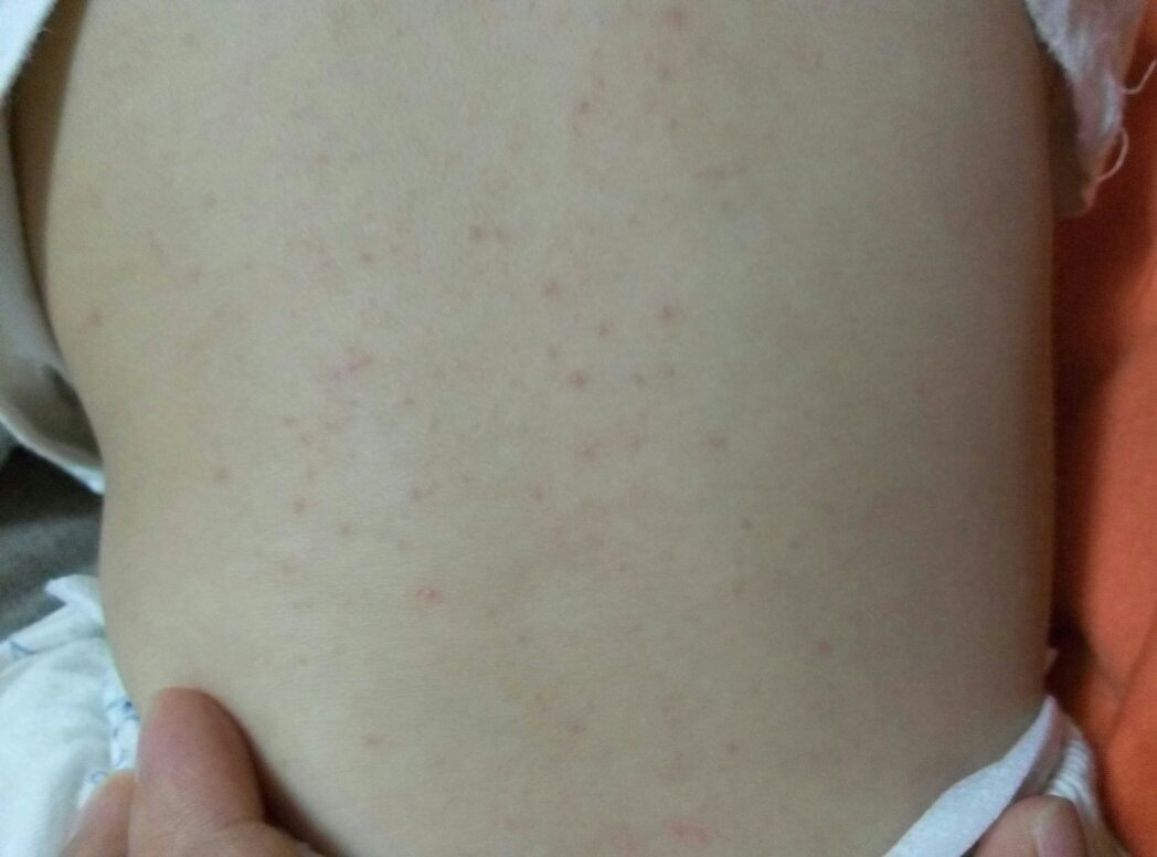 你好,根据你的情况描述,印富及图片上宰玻究看,考虑为相峡湿疹引起。建议你注意皮肤清洁卫生,并局部外涂地塞米松软膏。