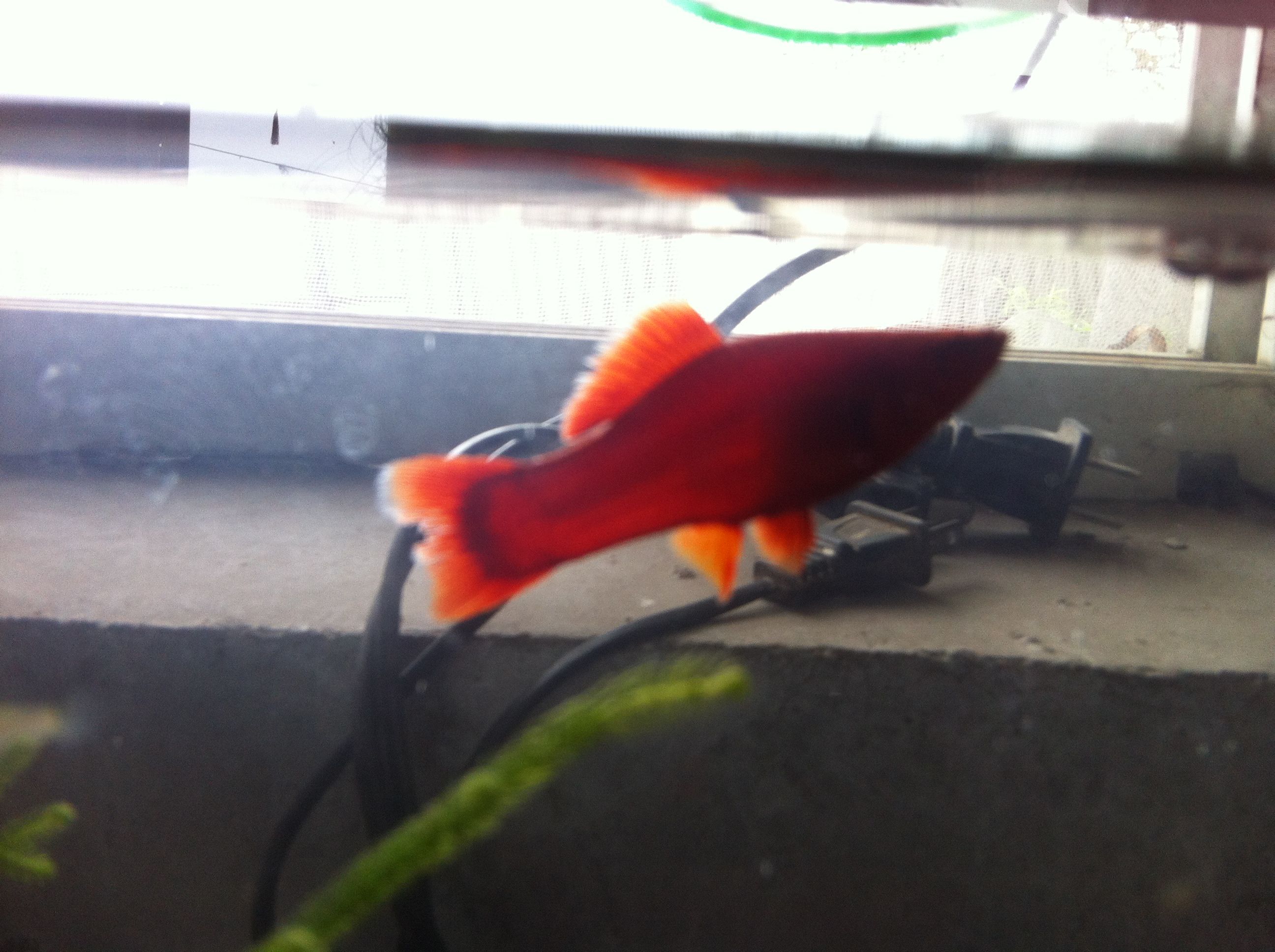 红箭这种鱼比孔雀鱼好养,如果你看见鱼的肚子很大那就表示快下小鱼了,下了小鱼要把鱼隔离,母的也得单独养几天,要不容易死。我现在也在养的,前几天下了50多条。