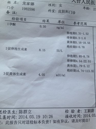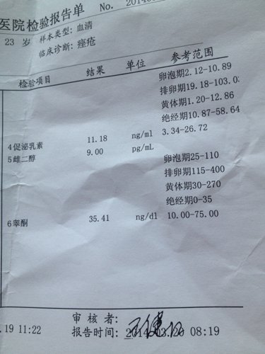 想知道是不是内分泌失调 脸上莫名长痘痘痤疮三个月,吃任何清热解毒的中药都不好 月经正常来,就是量少 想知道是不是内分泌失调。脸上莫名长痘痘痤疮三个月,吃任何清热解毒的中药都不好。月经正常来,就是量少!只有三天化验后医生说没问题。雌二醇是不是太低了,这是月经第四天化验的! 点击展开 匿名用户 2014-04-20 13:17 为您推荐: 其他回答 内分泌失调?双脚并拢站立,双手向前平伸,手指也要伸直,掌心向下,眼平视,看指尖是否震颤,若震颤就失调 母婴用户917103734 2014-04-20 13:22 相关问题 月经期间喝了中药,好像是清热解毒之类的,可以去后背上,胸前的痘痘,调理身体,但是平常月经都是1礼拜 吃紧急避孕药会导致内分泌失调吗?我14号和24号吃了紧急避孕药,前两天开始脸上长了很多痘痘,我该怎 我结婚三年未孕,因长期上夜班而导致月经不调内分泌失调,吃了一段时间中药也不见效果,我现在月经半年才