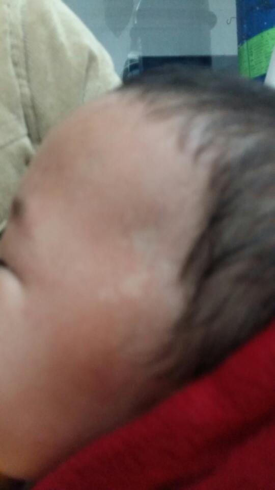 宝宝一周岁脸上出现白斑了?去医院看 医生说是血斑 那块没血哭起来看得特别清楚