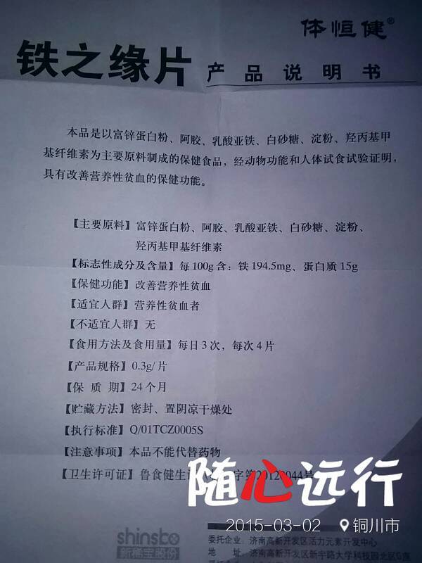 今天化验,医生说我缺铁,让我在健康大药房买的铁之缘片,但是说明书上并没有写孕妇用,敢吃吗?