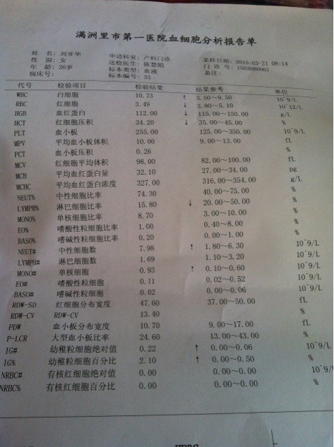 血常规化验结果,正常么 血常规化验结果,正常么 点击展开 ch...7@126.com 2016-06-12 19:53 为您推荐: 其他回答 您好,血常规提示白细胞升高,以中性粒细胞升高为主,红细胞和血红蛋白降低属于轻度贫血,血小板数量未见异常,还是考虑有细菌感染,如果您现在体温未见升高,目前暂且不用静脉使用抗生素,目前需要找到感染灶,可以先口服广谱抗生素,一周后再复查一下。 ® 2016-06-12 19:55 相关问题 血常规化验结果,请问有什么问题吗… 4岁孩子发烧37 8,血常规化验结果没什么事,但不退热怎么回事 血常规化验结果,求帮忙分析一下,症状有发烧,一点点留鼻涕 宝宝11个月!
