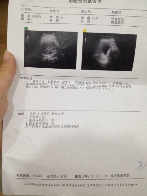 32周,我宝宝现在多少斤,谁看的懂?还有我胎盘是不是长得太快了,怎么办?担心 点击展开 健康小石头 2014-10-24 12:36 为您推荐: 其他回答 可以通过B超单上结果计算大致计算宝宝体重,但是计算出的结果与实际相比可能会有差距。一般来说,胎儿的的实际体重与估计的体重会有正负大约10-15%的误差。你家孩子估计有5斤左右。 啊晨ok 2014-10-24 13:42 相关问题 急急急 我37周 羊水48mm的25mm可以顺产吗?胎盘已经3级了 宝宝6斤 怀孕21周多子宫两侧走久了会很痛是什么原因?会不会是胎儿?还有我的胎盘很低 怀孕21周多子宫两侧走久了会很痛是什么原因?会不会是胎儿?还有我的胎盘很低