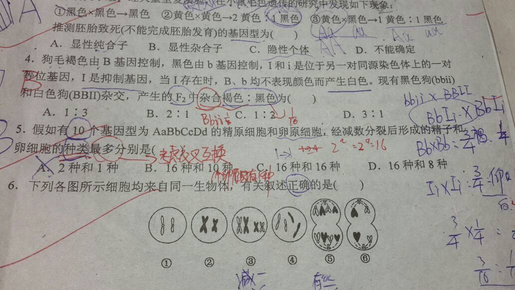 高一生物,第五题怎么做?需要详细解答!我不明白那些什么精子卵子有多少种的问题!比如老师说一个精原细 高一生物,第五题怎么做?需要详细解答!我不明白那些什么精子卵子有多少种的问题!比如老师说一个精原细胞可以产生两种精子,因为那精原细胞有两对等位基因,但是那个2的n次方又是什么,好乱!! 点击展开 匿名用户 2014-10-03 00:37 为您推荐: 其他回答 ! 匿名用户 2014-10-03 00:40 你不用草稿纸吗? 匿名用户 2014-10-03 00:40 楼主可以尝试去看av 来一发 之后这些只是1加1等于2的小问题 匿名用户 2014-10-03 00:39 相关问题 精子和卵子还有受精卵那些是于生命系统范围内(高一生物) 关于孟德尔生物学规律的认识:父本x y精子和母本x\x卵子有4种组合,请看我的猜想? 关于孟德尔生物学规律的认识:父本x y精子和母本x\x卵子有4种组合,请看我的猜想?