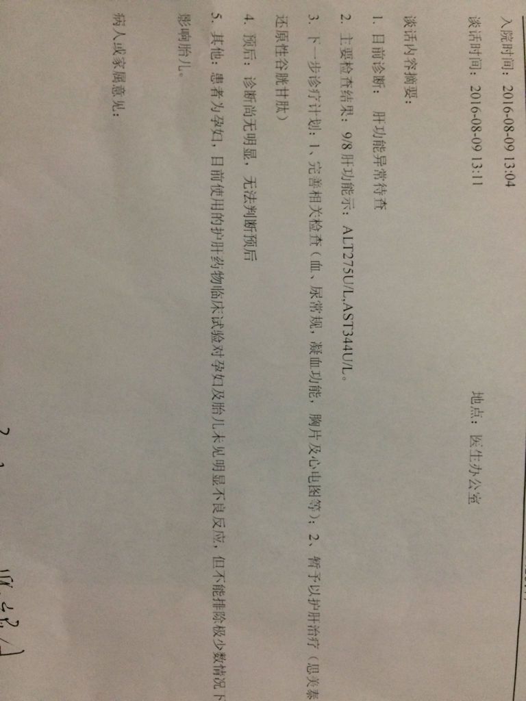 孕妇转氨酶高达300,孕7个月了该怎么办啊?下面是医生开的,大家觉得怎么样啊? 点击展开 匿名用户 2016-08-09 13:41 满意回答 你航安好啊,你要想要这个厘逼厉孩子你就得保肝治疗啊!你的金尺转氨酶高的可不少 cn#aQLkakGfak 2016-08-09 13:48 宝宝知道提示您:回答为网友贡献,仅供参考。 相关问题 宝宝刚出生后发烧检查出转氨酶高达180,2个月后复查是80,期间也没吃降转氨酶的药,请问宝宝正常吗 孕36周多,检查甲状腺说是严重甲减,t3和t4都偏低,tsh高达150怎么办,我是要剖腹产的,医生 急问:孕六周,促甲状腺素2 82,参考范围0 35-5 5,但医生说孕妇的最高值要下调到2 5,所