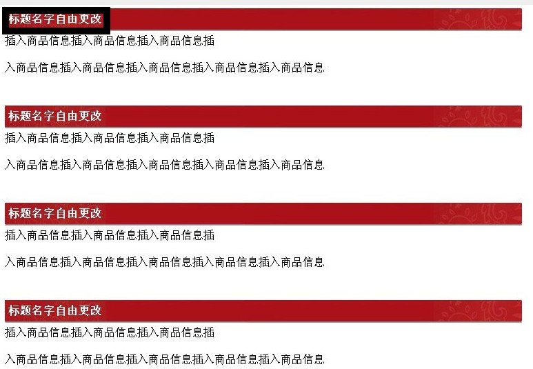 请看图,这个模板的“标题名字”是可以自由更换的,有一个问题就是,如果我已经用这个模板编辑了50个宝贝,然后我又想再改一改“标题名字”,是需要50个宝贝一个一个改,还是只需要改其中的一个,其他49个就能自动显示修改后的标题?