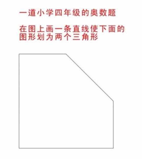 最火的一道小学奥数题,5分钟内做不出来回幼儿园深造去吧![图片] 跪了,真心不会!求大神 最火的一道小学奥数题,5分钟内做不出来回幼儿园深造去吧!【图片】 跪了,真心不会! 求大神画个图 点击展开 匿名用户 2014-12-31 15:27 满意回答 这是脑残题,用画笔粗线条 匿名用户 2014-12-31 15:31 宝宝知道提示您:回答为网友贡献,仅供参考。 为您推荐: 其他回答 应该是首先把图形对折,变为四边形,然后在画一条直线,就成两个三角形了。 匿名用户 2014-12-31 16:05 智商捉急了。 匿名用户 2014-12-31 15:29 ? 匿名用户 2014-12-31 15:27 相关问题 2013年最火的一道小学奥数题,5分钟内做不出来回幼儿园深造去吧!————求高手解答… 各位大神级人物宝宝网吧还是奥数题 太湖县新城小学幼儿园唱红歌的图片