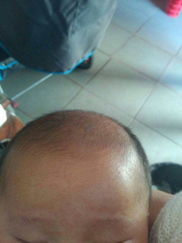 请问各位宝妈美女们,我宝宝的额头长这些小红点是什么东西啊?还会脱皮的,宝宝皮肤好差哦!