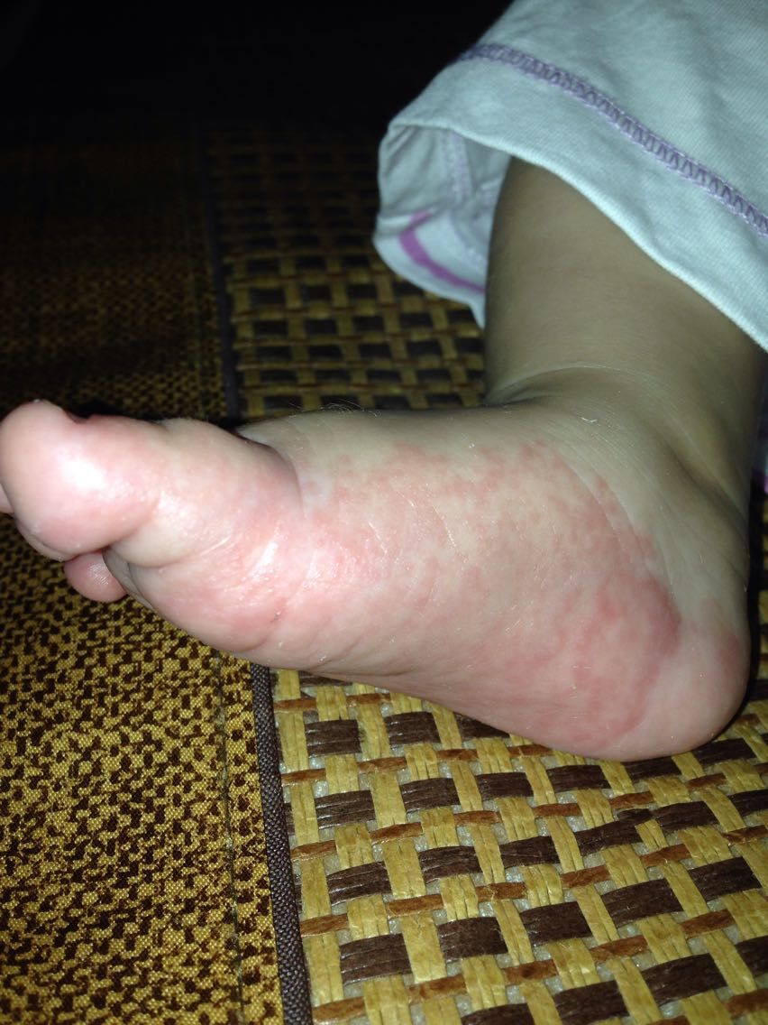 你好。宝宝的脚夕以上是湿疹,被袜子捂得。可以用苯海拉明软膏涂搂套法抹在葛兵患处,过几天会好的。