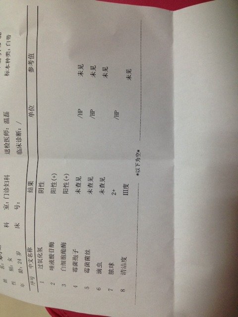 求在线医生帮忙看一下这个白带报告,是不是很严重? 求在线医生帮忙看一下这个白带报告,是不是很严重? 点击展开 内牛满面的等待 2015-01-20 08:55 为您推荐: 其他回答 根据你现在检查的结果考虑是细菌性阴道炎引起,现在是可以用甲硝唑栓在阴道内用药治疗。 幸福的音符乐园 2015-01-20 11:20 你看那个+号就知道,+号越多越严重 幸福的一家三口^_- 2015-01-20 09:55 相关问题 白带检查报告,谁帮我看一下 有在线的医生吗?帮我看看无创DNA的报告,这报告显示是不是正常呀? 这个是我做的四维彩超的报告单!可是我看不懂有没有在线的医生帮忙看看宝宝还好吗?