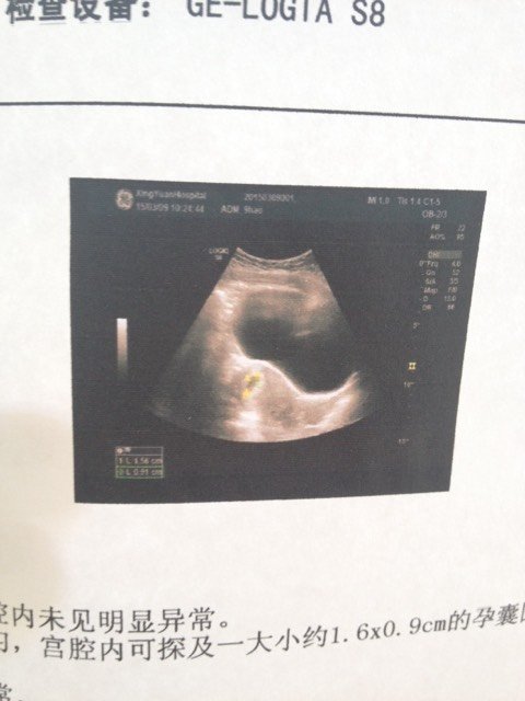 膀胱充盈,内膜光滑,腔内未见明显异常 子宫增大,肌壁回声均匀,宫腔内可探及一大小约1.60.9 膀胱充盈,内膜光滑,腔内未见明显异常。子宫增大,肌壁回声均匀,宫腔内可探及一大小约1.6✕0.9㎝的孕囊回声,未见明显胚芽及原始心管搏动。双侧附件区未见明显异常。 点击展开 NaBao娜宝児 2015-03-09 10:54 为您推荐: 其他回答 你好一般怀孕五周孕囊进入子宫,六周有胎芽,七周左右有胎心,你怀孕大概在六周左右,建议过一周后复查观察胎压及胎心情况。 cn#BkkkupBpfQ 2015-03-09 11:04 相关问题 膀胱充盈可,子宫增大,肌层回声均匀,宫腔内探及大小约0 6*0 6cm的妊娠囊回声,内未见胚胎组织及原始心管 膀胱充盈可,子宫增大,肌层回声均匀,宫腔内探及大小约1 7*1 5cm的妊娠囊回声,内可见胚胎组织及原始心管搏动 膀胱充盈可,子宫增大,肌层回声均匀,宫腔内探及大小约1 7*0 7CM的 妊辰囊回声,内未