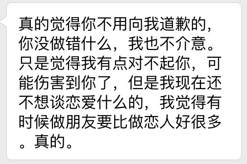 表白失败了,她说做朋友,然后我道歉了,然后她回了如下的回复 我觉得她是个好女孩,她以前收到过伤害