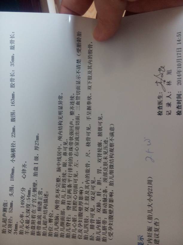 从提供的检查单看,胎儿的发育符合孕21周的表现。胎心率在正常范围内,羊水最大深度54mm考虑羊水偏多,胎盘附着位置正常;现在是臀位,余无异常。建议暂时观察,定期产检。