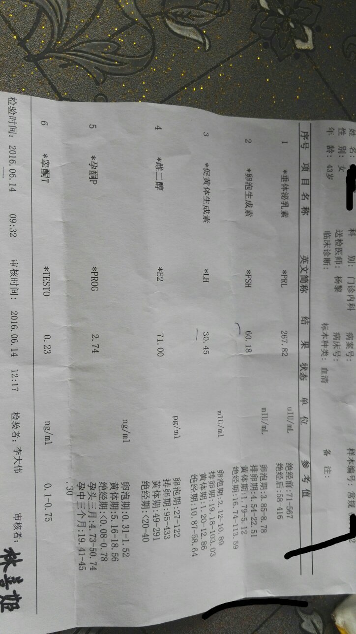 43岁,月经不调,不孕,刚做的激素六项,卵泡生成素和促黄体生成素都高,想要孩子,帮帮忙看看应该怎么 点击展开 匿名用户 2016-06-16 15:14 满意回答 你好,化验性激素六项结果提示卵巢已经衰竭,就可以出现月经不调堡叨饥的现象貌貌,如果想自然受孕,几率唤孟很小的, cn#afLVaGLLVB 2016-06-16 15:16 宝宝知道提示您:回答为网友贡献,仅供参考。 相关问题 月经不调,做了六项激素检查,结果如下:黄体生成素8 51,促卵泡刺激素9 34,睾酮0 81,孕酮 最近月经不调,月经前后经常头痛胸闷,医生建议检查性激素和b超(子宫内膜和双卵泡) 我月经过少,月经第二天激素六项如下:促卵泡生成素10 4促黄体生成素2 42泌乳素43 2雌二醇3