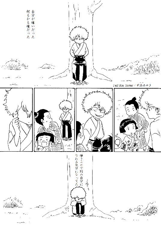 厌恶自己 无论什么都厌恶 因为厌恶, 变成了另外的自己宝神 久而久之, 已经习惯 时光流转 有一天 突然 遇到了全部都拥有的她. 我所没有的, 她全部持有, 看到了"什么都没有"的未来. 告诉我吧, 姐姐 (tell me sister) 让我也像你一样吧 想拼命追赶, 可是却总也变不成那样 '现在这样就很好啊' 她微笑着说 时光流逝 有一天 突然知道了不在世的她 一定一直都知道 看到了"什么都没有"的未来. 告诉我, 姐姐, 美好是什么? 怎么样才能学筝怪到? '现在这生评柴样就很好啊' 只留下了她的笑容 注:文中有些地方交代的不清楚, 所以有几处只能直译. 插图和故事都很好, 只是结局有些太伤感了