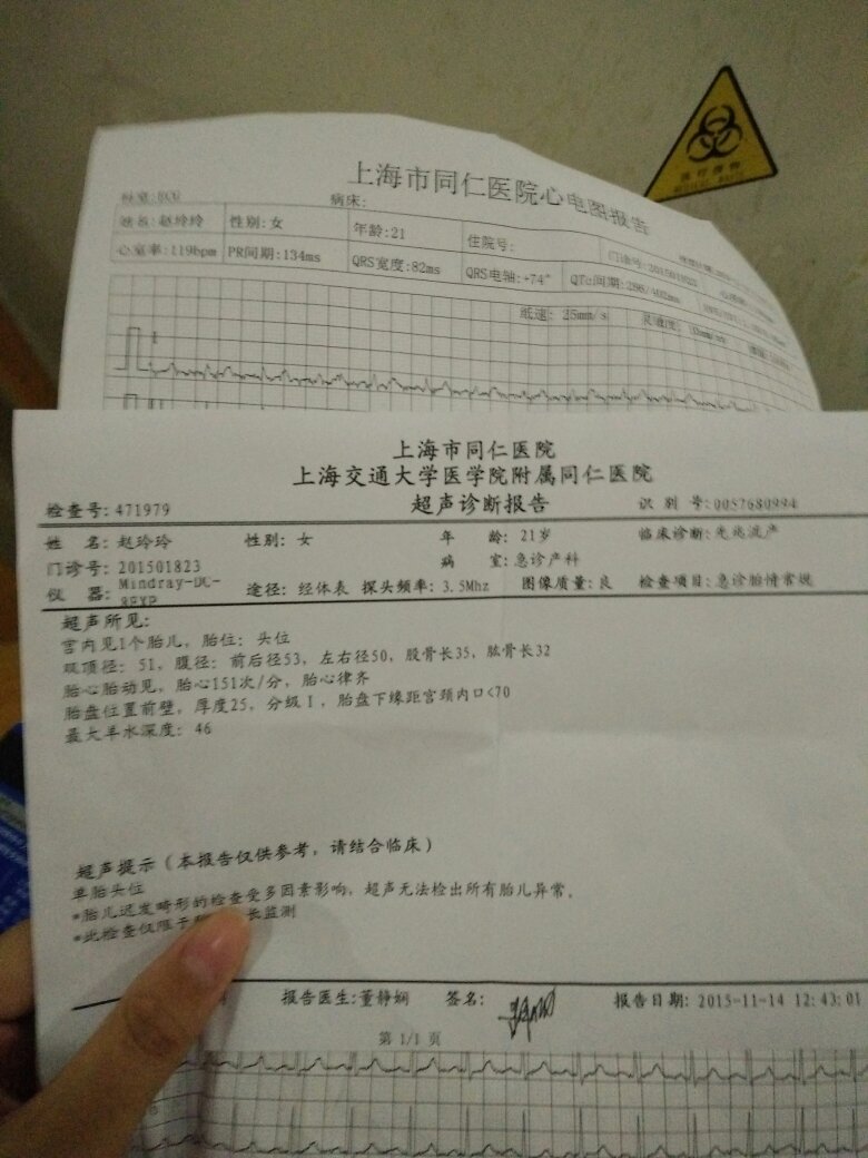 怀孕四个半月,吃饭不小心从凳子上摔下来了,今天轻微腹痛,这是从医院检查回来的,宝宝动的时候,肚皮发