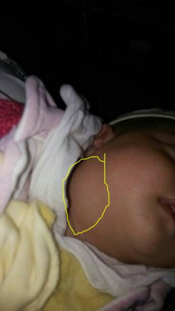 你好!2个月大的宝宝下巴浮肿,没有肿块,去医院做体检时,医生说因为宝宝在胎中时,妈妈经常侧一边睡