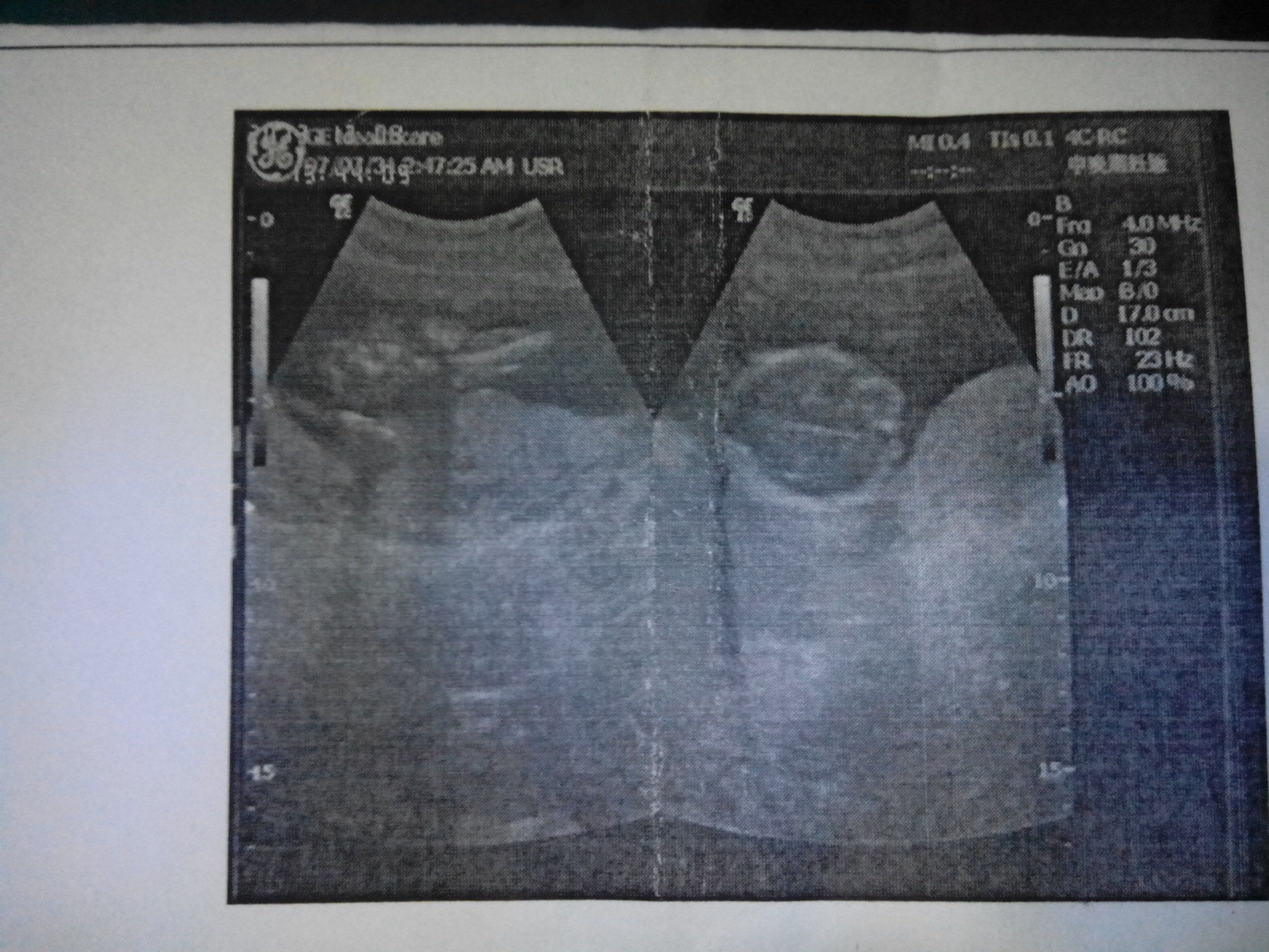 我猜是男孩,人说男孩是脸朝外背对着妈妈,女孩是脸朝里抱着妈妈。我看B超宝宝是脸朝外的
