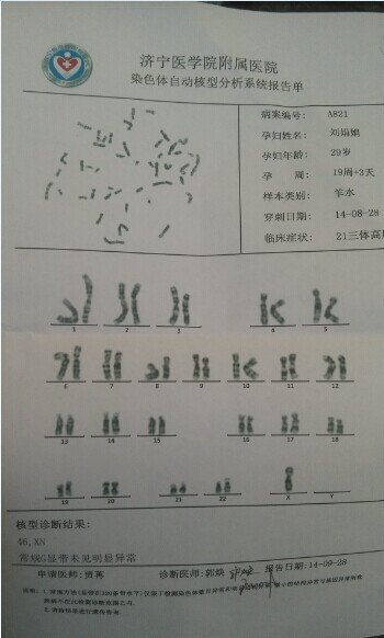 羊水穿刺报告能不能看出男孩女孩啊? 就是想知道 好做好准备! 点击展开 匿名用户 2014-09-29 22:37 为您推荐: 其他回答 你好,羊水穿刺是筛查胎儿患的一种染色体疾病,但是决定性别的那个染色体医生回会给你隐藏,因为鉴定性别是违法的,所以从羊水穿刺的报告单上是不会看出宝宝的性别的。 潇洒行走天涯 2014-10-05 11:10 相关问题 羊水穿刺结果能看出男孩女孩吗?(男女无所谓但还是想早点知道) 求助求助!帮忙看看这个唐氏筛查的报告单,医生说要做羊水穿刺!有一个是高风险,怎么办? 大家帮我看下这是做唐氏筛查的报告,有没有必要做羊水穿刺或无创dna 谢谢!