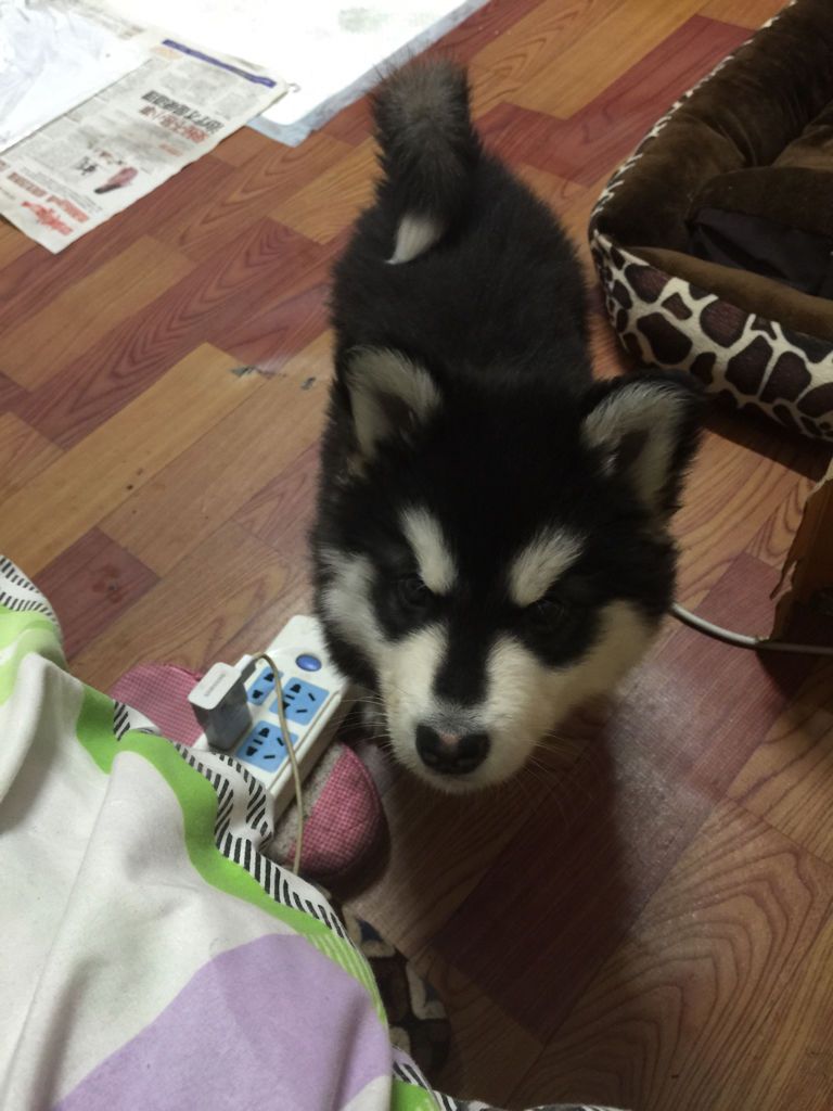 我养了一只阿拉斯加幼犬,从泰州带回来时50天,刚刚断奶,第一天拉屎正常,我给它吃的狗粮用温水泡的加