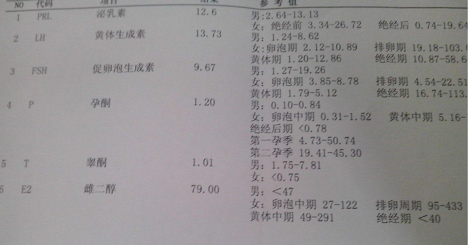 月经推迟23天了,去医院验血没有怀孕 医生又让做了内分泌6项检查,出来报告我也不懂希望懂的帮我看看