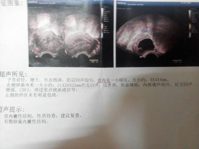 这张B超是我4月4号那天照的,昨天我又去照了一次,显示:子宫前位,大小约55×36×48mm,轮廓