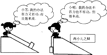 如图所示,将相同重物提升相同高度时,两小儿发生争辩,关于机械省力、省功以及机械效率的辩论,你支持小