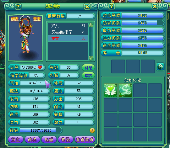神武我这只龙女宝宝怎么样,要打什么技能书嘛? 如题 点击展开 匿名用户 2015-03-13 16:05 推荐回答 这种宠还打什么书啊,扔了。打书减稼要选好宠垃吊局,天资A红心以上,攻资至少也要1500以上 其他防虏糟,体,速也很重要, 匿名用户 2015-03-13 16:16 宝宝知道提示您:回答为网友贡献,仅供参考。 为您推荐: 其他回答 技能不好,不但要资质还要技能 匿名用户 2015-03-14 09:00 相关问题 神武游戏龙女宝宝本身技能不打书能用吗 麻烦你们帮我看看我这个龙女再怎么打书,弄个JP宝宝 神武龙女宝宝什么时候洗容易出好宝宝