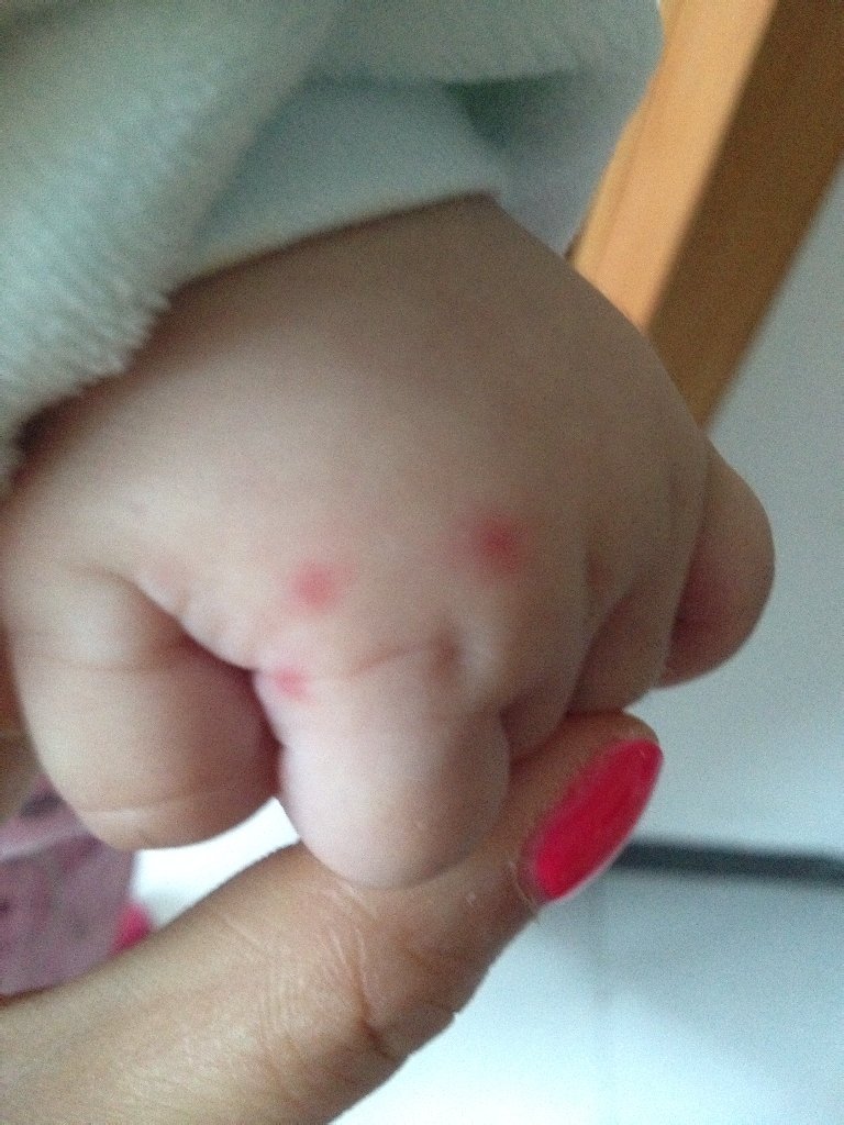今天早上起来 发现宝宝手上 头上长了些红色的小点点 但是不像是被蚊子咬的 有点像过敏 身上没有 左 今天早上起来 发现宝宝手上 头上长了些红色的小点点 但是不像是被蚊子咬的 有点像过敏 身上没有 左手上有三颗(见图)右手没有 头上分布得有!请问这是怎么了?急! 点击展开 139*****664 2014-06-22 07:48 为您推荐: 其他回答 你好,这个好像是被什么东西咬了,所以你还是要自己注意带宝宝去检查一下的给宝宝涂抹一点药膏的, 可靠的悠闲80 2014-06-23 20:45 相关问题 我家宝宝身上老是有红色的小点点,像被蚊子咬过一样,不知道可以给他擦什么药膏 宝宝四个月了,手上被蚊子咬了很多小胞,都肿了,有什么好办法治疗 宝宝断奶后腿上长了很多痘痘,是奶粉过敏吗?手上和背上都是很少的几个,医院说的是过敏,但他又不抓