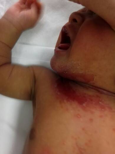 有谁家宝宝得了脓疱症的?我家宝宝现在在新生儿重症监护室,我前几天发现宝宝额头,脖子附近长痘痘,我 有谁家宝宝得了脓疱症的?我家宝宝现在在新生儿重症监护室,我前几天发现宝宝额头,脖子附近长痘痘,我家人说没事,说是汗痘,等等会好!几天后的今天,奶奶带宝宝去洗澡!人家叫她带宝宝去医院,到了医院,医生说,宝宝是由于护理不当,造成宝宝现在细菌感染,水泡里有细菌!现在宝宝在保温箱里,医生说现在在消炎!等炎症退了后,就检查,细菌有没有近脑子或者是身体,因为进脑子,那就是脑炎!我想请问这医生的硕大对吗?还有我宝宝有没有生命危险?(女,1个月) 点击展开 seven_狮子座 2015-01-28 10:16 为您推荐: 其他回答 建议及时检查治疗比较好,不要吃辛辣刺激及油腻的食物,养成良好的生活习惯,不要熬夜,保持心情舒畅。 С521 2015-01-28 14:34 相关问题 额头上突然长出很多脓疱似的痘痘是什么原因?是不是过敏… 宝宝出生15天 额头眼睛旁边长了像痘痘一样的一粒粒的 是什么呀?改怎么办? 宝宝昨天上午耳朵后面 下巴 脖子 额头出了好多痘痘 前胸也有 哭的话更多更红 不哭就会消很多怎么回