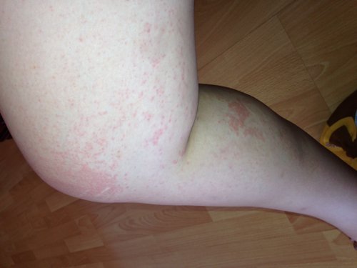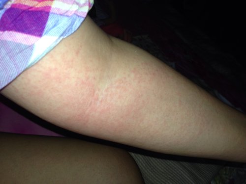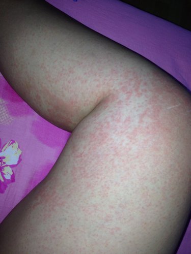麻疹还像湿疹跟痱子但是不疼不痒,过了几天脚上少了很多, 大腿跟手臂上长满都是(难道转移了?),睡觉起来没 这么多 呆一会就扑的身上的到处都是,沾水就又多又红,不疼不痒,没感觉 但看着吓人 扑的身上哪都是
