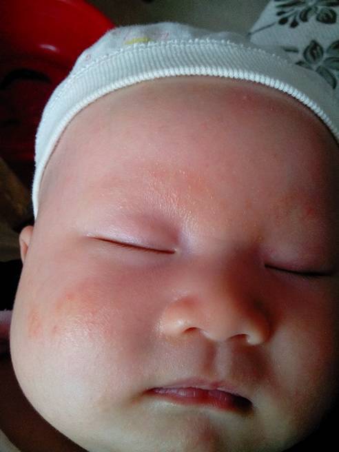您好,您孩子这种情况考虑是湿疹,湿疹是一种免疫性疾病,一般可以在两周岁之内自愈,所以一般轻微的皮疹我们不主张过度治疗,皮疹严重的话可以用丁酸氢化可的松软膏外用。