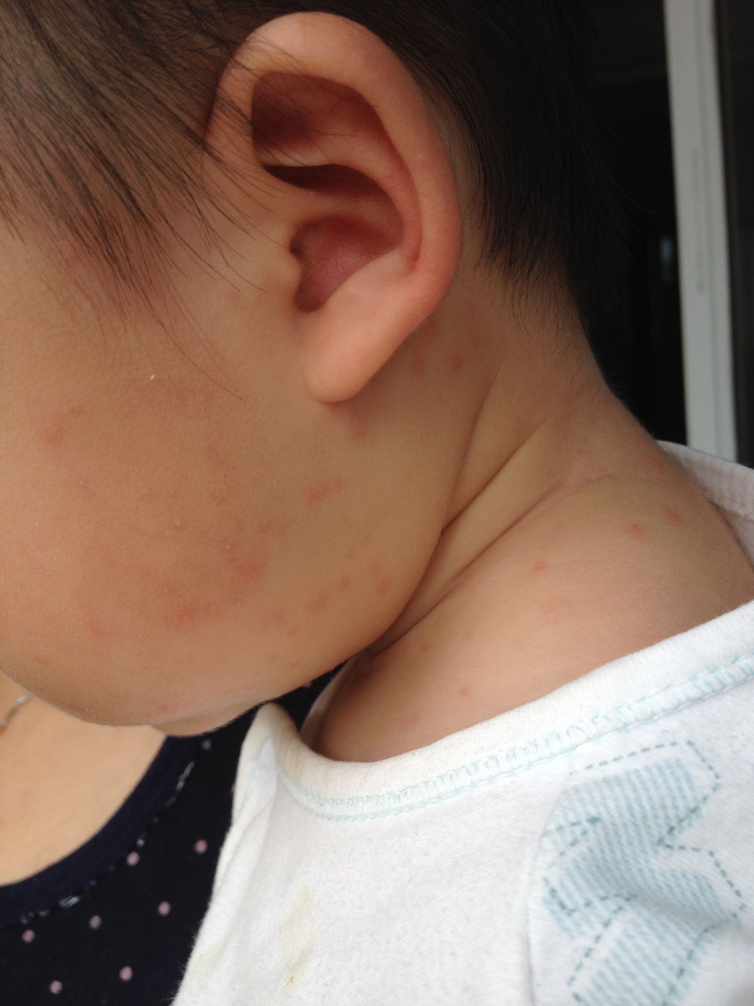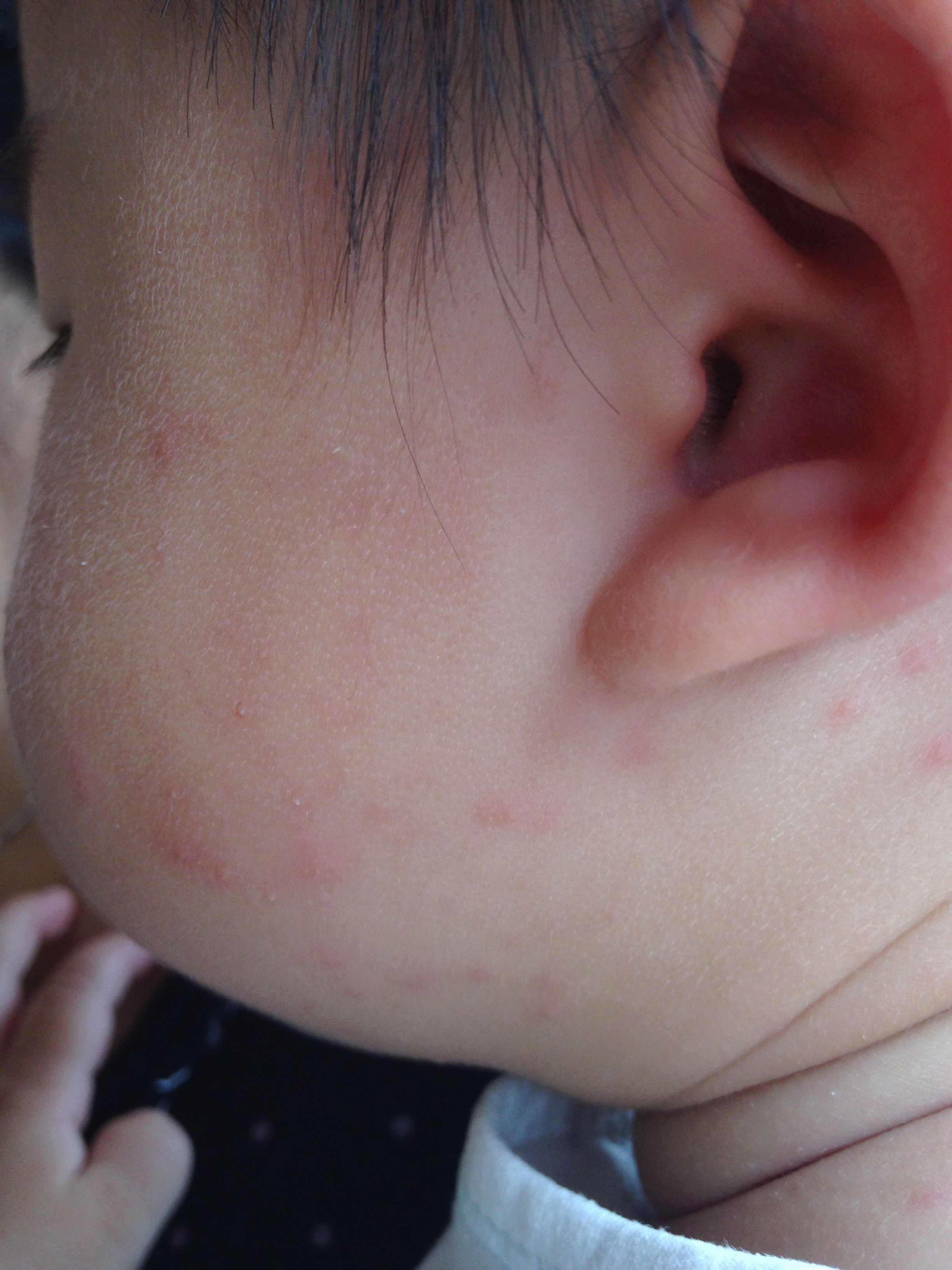 我家宝宝9个月大,脸上长了很多小红疙瘩,见图片,脸上也有,嘴周围,眼睛周围有很多小疙瘩,宝宝总是用 手挠眼睛,估计是有些痒。有些呕吐,拉肚子,哭的时候有鼻涕流出,两天前低烧37.8烧了一天,现在不烧了。上个月22号已经出过小儿急疹了。从前天开始吃了龙牡壮骨颗粒,平时奶奶每天给她蒸鸡蛋吃,我们说不能吃蛋白她也不听,不知道是不是过敏了?请医师给一些参考意见,谢谢。 查血验单也在图片里面。下午去医院看了,医生说是病毒性皮疹。 点击展开 匿名用户 2014-05-17 20:59 为您推荐: 其他回答 病情分析: 考虑宝宝湿疹,可搽炉甘石洗剂或振荡洗剂. 指导意见: 最好到医院看看也可短期应用地塞米松霜或肤轻松软膏外搽。祝宝宝健康成长 进访梦_Jtdf 2014-05-18 09:25 相关问题 我家宝宝9个月大,脸上长了很多小红疙瘩 见图片,身上背上,腿上也有,嘴周围,眼睛周围有很多小疙瘩 昨天开始宝宝开始拉臭臭有奶半子,一天拉4到5次,今天吐奶了,吐了很多,而且脸上长了很多小红疙瘩,这 五个月零六天的宝宝,晚上睡觉后背汗湿了一片,被子是薄的,穿的连体衣,脸上无湿疹,但是后背起小红疙瘩