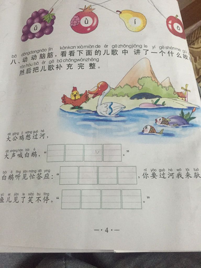 看看下面的儿歌中讲了一个什么故事 然后把儿歌补充完整 点击展开 匿名用户 2016-10-22 20:51 为您推荐: 其他回答 你瞅啥啊,瞅你咋地,你妈炸了 匿名用户 2016-10-22 20:56 相关问题 补充句子,我给奶奶讲故事……… 我给妈妈唱儿歌……… 一只小猴爱画画,画只麻雀缺尾巴 麻雀乐得喳喳叫,谢谢猴子大画家 儿歌中讲得是谁的故事 最新款宝宝儿童早教电话机,功能,讲故事,儿歌,唐诗,笑话,几何图形,数字等功能!现包邮29 9!需要的麻麻联系我 我家宝宝自己也玩呢!