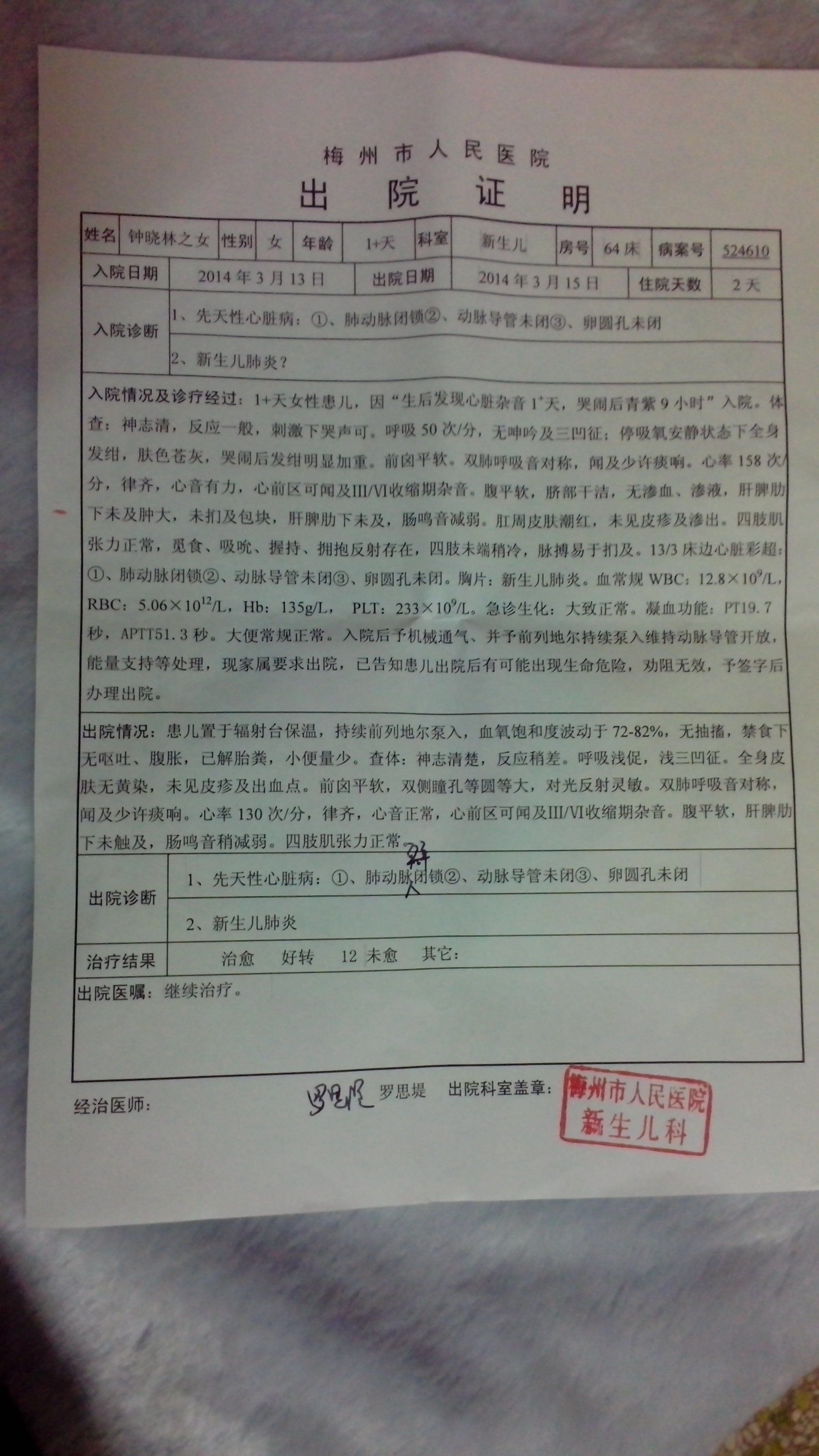 问题分析: 先天性心脏病,动脉导管未闭,卵圆孔未闭,目前描述的范围较小,还是有一定的自愈的可能性,先定期的复查观察。 意见建议: 避免感冒和肺炎,具体治疗的方式和费用要看变化的病情。最晚学龄前也要治疗。