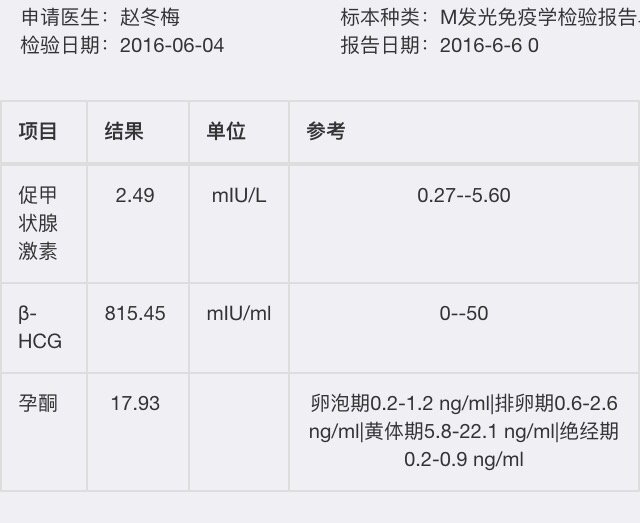 求妇产科专业医生帮我分析下这份报告!我2016/4/18最后一次月经,前天去孕检有喜了,今早有点姨