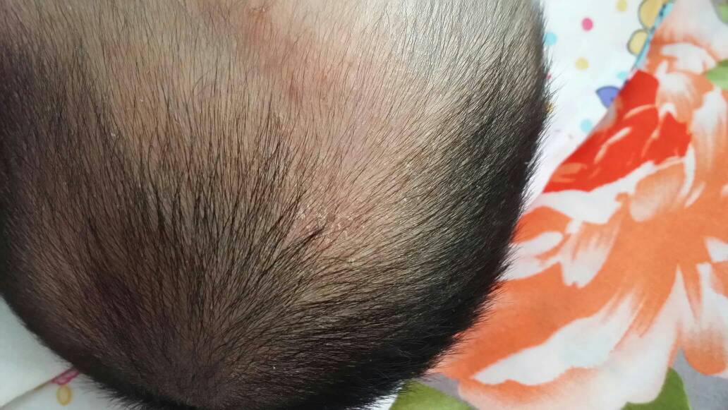 宝宝快2个月了头发上张跟头皮屑是的东西每天都用湿巾擦为什么擦完第二天还会出来,请问该怎么处理,看着