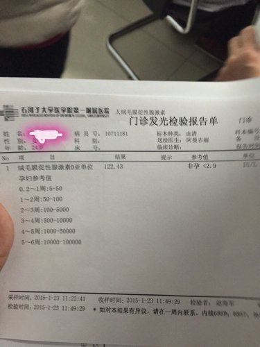 血hcg 星期二抽血22.43 星期五抽血122.68 停经35天 上个月19来的月经 现在 特想