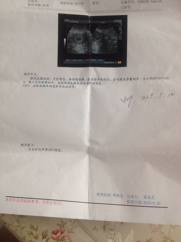 末次经期5月12日,下身一直有咖啡色的分泌物 吃了12天黄体酮这两天已经没有了 这是两次的B超单…