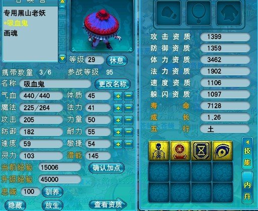 资质一般吧,成长还可以,3000W肯定卖不上,摆个300W左右估计还能有人看得上 打书可以试一下 金属性:反击、吸血、连击、必杀、强力、偷袭、雷击 木属性:反震、飞行、隐身、招架、永恒、防御、鬼魂术、慧根、土属性吸收 水属性:水攻、法术暴击、法术连击、法术波动、冥思、魔之心、火属性吸收 火属性:驱鬼...