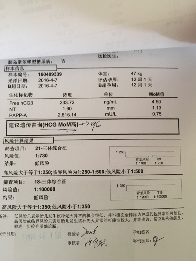 早期唐筛建议遗传咨询高会怎样?好担心 早期唐筛建议遗传咨询高会怎样?好担心 点击展开 琳琳👸 2016-06-06 13:15 为您推荐: 其他回答 祝宝贝健康 空闲的淘气宝贝 2016-06-06 13:22 不清楚…… 庚S知恋 2016-06-06 13:22 应该没事的! 159*****122_Ow8T 2016-06-06 13:20 可能会遗传 杏花雨宝宝 2016-06-06 13:20 放宽心,,, 白色、_GuEh 2016-06-06 13:19 加载更多 相关问题 唐筛结果出来了,低风险,建议遗传咨询 我怀孕十三周,上几天做的早期唐筛说宝宝的脊椎有点厚2 56想问一下严重吗?有点担心 24周做四维查出右侧脉络丛0 8乘0 7囊性结构,现在很担心,医生建议做羊水穿刺,怎么办?早期唐筛