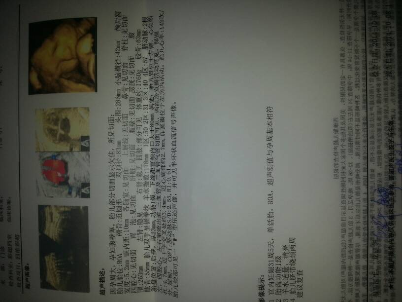 亲教医生这是32周做的四维,我有妊娠期糖尿病 麻烦你们帮我看一下宝宝偏大不 宝宝正常吗? 点击展开 铁旦妈咪 2014-10-20 17:19 为您推荐: 其他回答 可以通过B超单上结果计算大致计算宝宝体重,但是计算出的结果与实际相比可能会有差距。一般来说,胎儿的的实际体重与估计的体重会有正负大约10-15%的误差。你家孩子现在估计有4斤左右。 啊晨ok 2014-10-21 00:19 相关问题 末次月经2月6号,这个b超是5月6号做的麻烦医生结合b超看看我宝宝到底多少周?感谢 孕24+4天了 今天去做四维 宝宝有750g了 医生说偏小 是真的么? 这样的四维照片是不是不健康啊?医生说胎位偏低,有危险吗?哎,这图我都看不懂,看不清楚那个是宝宝的头