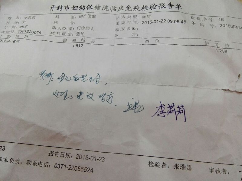 请问专家,怀孕验血,O效价B型,1:512,母子会不会有危险?谁是O型?和父亲的血型有关系吗?谢谢 了! 点击展开 匿名用户 2015-01-27 10:01 为您推荐: 其他回答 根据描述,ABO效价高会导致胎儿宫内溶血,危机生命。建议在医生指导下积极治疗。另外,0型是妈妈的血型,这个跟父亲的血型是有关的。一般O型血的孕妇,如果父亲是A型、B型、或AB型的话胎儿就有溶血的可能。 wzlzx520 2015-01-27 16:49 相关问题 怀孕32周了,医生说我和丈夫血型不和我是O型,丈夫是B型,需要验血,请 女的O型,男的B型,血型不合,验血比例1:128,医生开了茵栀黄口服液,维生素C,维生素E,孕妇多维营养素,吃了一个月,如果血型的比例有降低的话,有必要再吃那些药吗? 怀孕了去医院检查,其中也验血了,可以问下医生我是什么血型吗?