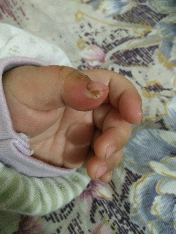 宝宝八个月,大拇指手指甲有点劈,我就用嘴咬着给撕掉了,一不小心给扯流血了,现在感染了,医生给开的鱼 点击展开 匿名用户 2016-10-15 20:33 为您推荐: 其他回答 : 一般来说的话如果出现这种情况宝宝可能是牙齿会比较痒一点。平时的话给宝宝做饭的时候可以多让宝宝。 匿名用户 2016-10-17 10:51 - 有一次我就不小心被他吃了,四只腿很长很短,指甲非常锋利,总是爱抓人,耳朵却是大大的,刚两个月, 匿名用户 2016-10-17 09:46 相关问题 我的手指甲,特别是大拇指的指甲月牙白很大,比别人的… 我的手指甲上只有大拇指有,食指只有一点点白色月牙… 刚刚发现手指甲上的月牙只有大拇指上有别的手指都消失了 孕前我每个手指都有小月牙 各位宝妈你们发现这个问题了嘛 我是不是缺营养了
